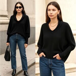 Nili Lotan S Oversized 100% Cashmere Batwing Sweater V Neck Relaxed Fit Black