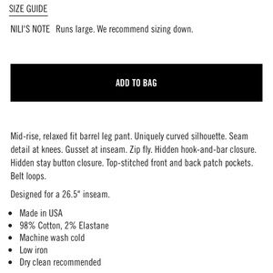 Nili Lotan Shon Crop pant in sturdy stretch cotton. Slightly cropped. Size 8. Missing inside button at waistband.