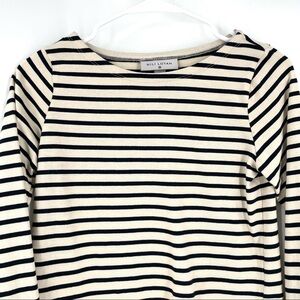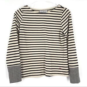 Nili Lotan Striped Long Sleeve Boat Neck Top Embroidered Monogram