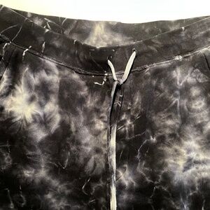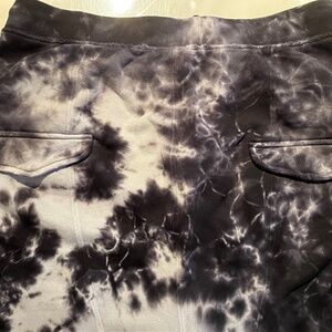 Nili Lotan Tie-Dye Black and Gray Drop Crotch Sweatpants (See the matching hoodie in my closet.). Front and back pockets! Waist stretches from 32" to 38". Inseam from that dropped crotch is 23"