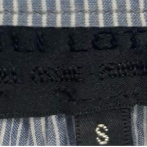 Nili Lotan shirt is perfect for any casual or travel occasion. The blue and white striped pattern adds a touch of bohemian designer style. The shirt is made of 100% cotton and is machine washable for easy care. It has a relaxed fit, long sleeves, and a V-neckline with a button closure.