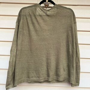 Nili Lotan Tribeca Design Studio mustard V-neck w/tassel 100% linen blouse, XS