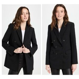 Nili Lotan Valerie Pinstripe Double Breasted Virgin Wool Blazer Size 4 NEW Black