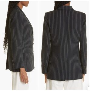 Nili Lotan Valerie Pinstripe Double Breasted Virgin Wool Blazer Size 4 NEW Black