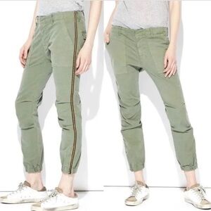 Nili Lotan Women 2 Grosgrain Camo Green Tape Cropped French Military Jogger Pants.