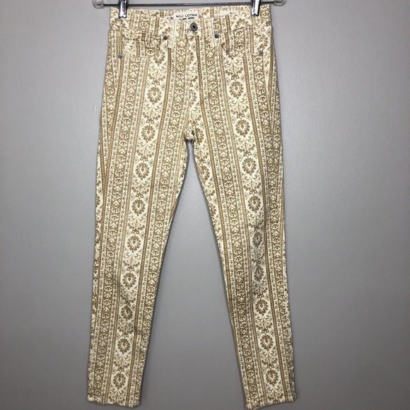 Nili Lotan Women's 26 Khaki Mid Rise Wallpaper Print Crop Skinny Jeans