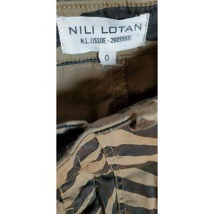 Nili Lotan Women's Coyote Black Brown Jenna Pants Size 0 Frayed Hem Animal Print
