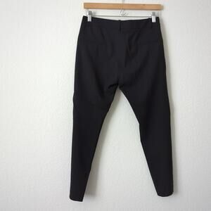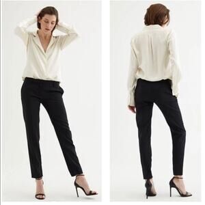 Nili Lotan women's pants size 0 black trouser pant 95% Virgin Wool 5% elastane made in USA. Style name LEO? tapered leg dress pants perfect for the office career lady girl boss inseam 25. rise 9.5 flat across waistband 14.75 next to new condition