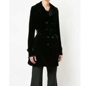 Nili Lotan Womens Velvet Parker Black Trench Coat Sz Small Double-Breasted Silk