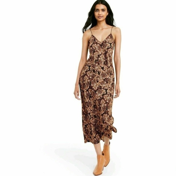 Limited Edition Designer Nili Lotan with Target Brown Paisley Print Pencil Slip Dress Classic comfort and chic style come together in this Paisley Print Slip Dress from Nili Lotan x Target. With a V-neck design and adjustable spaghetti straps, this lightweight midi-length slip dress makes for a cool and comfortable choice with a simple pull-on fit and casual silhouette. The lightweight fabric features an allover paisley print in versatile brown shades, and a side slit shows a bit of skin while also allowing for easy walking and movement. "By blending European simplicity with '70s Americana cool, Nili creates pieces as versatile as they are timeless."