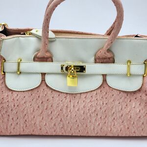 Nillie Pink Embossed Faux Leather Lock Satchel Tote Bag
