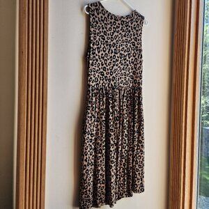 Niloufo Brown Leopard Print Sleeveless Stretchy Midi Sundress Size Large. Lightweight stretchy fabric. Fun leopard print. Double front pockets! Excellent condition!