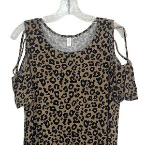 Niloufo Cold Shoulder Shirt Large Brown Black Leopard Print
