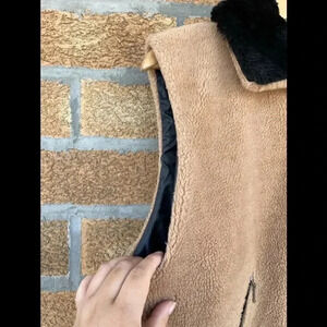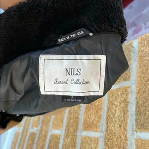 Nils Resort Collection Beige & Black Fleece Vest Cinch Waist Apres small