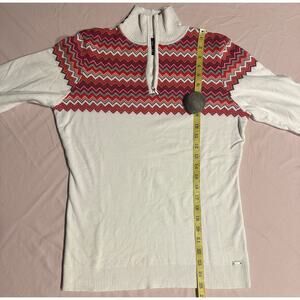 Nils designer quarter-zip sweater red & white zigzag pattern Large Women’s Top