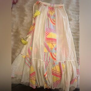 Embrace vibrant style with this colorful patterned maxi skirt. Perfect for adding a pop of color to your wardrobe.