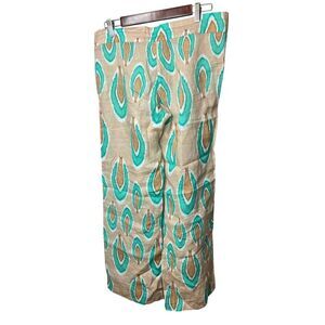 Nimo with Love Ikat Tan Turquoise Linen Pants Sz. S
