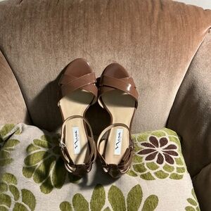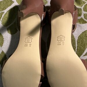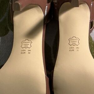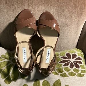 VENUS - Gorgeous Mocha Patent leatherette dress sandals that will have you dancing the night away. Heel height is 3 1/2 inches, almond toe, adjustable ankle strap with buckle closure.