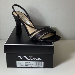 Style your look in the sleek and chic Nina™ Abbi heels, designed for a glamorous gait that complements your dresses and outfits. The strappy design features high heels and elasticized ankle strap.