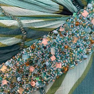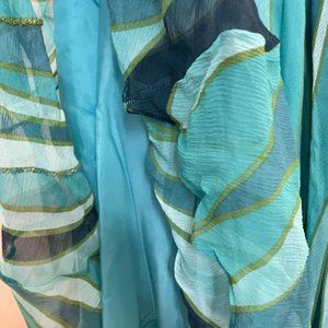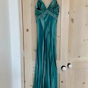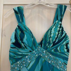 Nina Austin 100% Silk Floor-Length Evening Gown - Blue Green - Size S