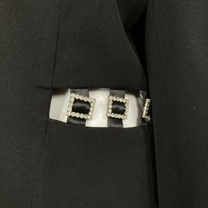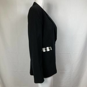 Nina Austin Jacket Blazer Womens Sz 10 Black Rhinestone Buckle Waist Button