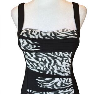 Nina Austin Silk Blend Cocktail Dress Knee Length Zebra Print Womens Size Small