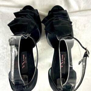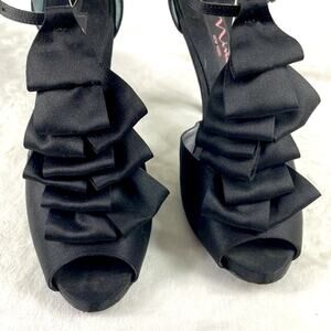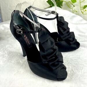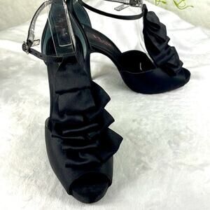 Nina Black Ruffle 4 1/2 Heel Adjustable Ankle Strap Peep Toe Shoe Size 7 1/2