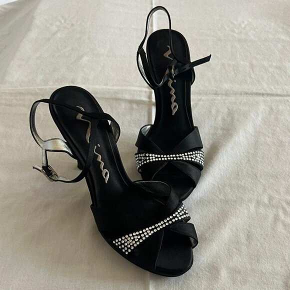 Nina Black Satin Dress Heels with Bling. Size 7N. The brand "Nina" is for narrow feet. These are 7N.