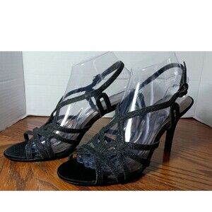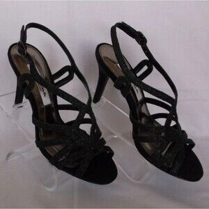 Nina Black Slingback Heels size 7 NINA Black Sparkly Size 7 Strappy Ankle Buckle