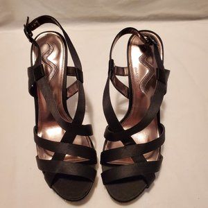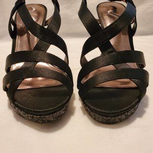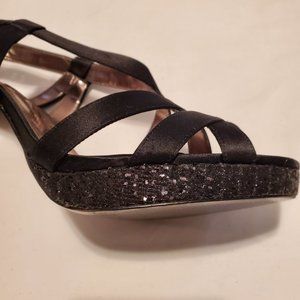 Nina Black Strappy Heels with Black Glitter Size 10M