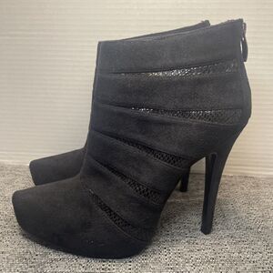 Nina Booties Womens Size 10 Black High Heel Faux Suede Pointed Toe Zip Back