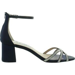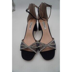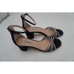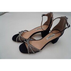 Pre-owned without tags or box Nina Brooke Rhinestone Ankle Strap Block Heels Women's Navy Dress Sandals Sz 10. Elevate your look with these chic black strappy heels. Featuring a stunning rhinestone detail, these shoe are perfect for adding a touch of glamour to any outfit.