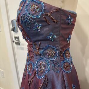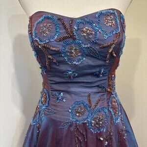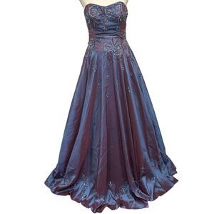 Nina Canacci Vtg Y2K Strapless Purple Blue Iridescent Beaded Sequin Ball Gown