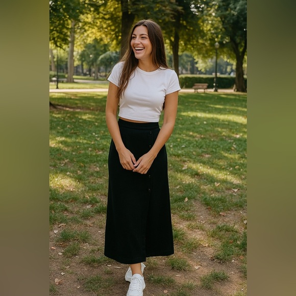 Nina Charles Kasper ASL wool blend maxi skirt Medium black buttons whimsigoth