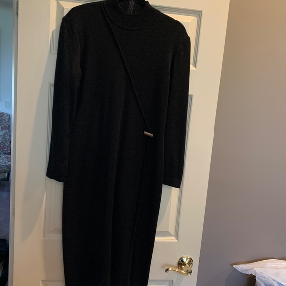 Nina Charles for Kasper ASL Black Mock Neck Midi Dress sz M