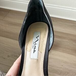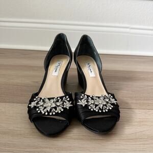 Nina Emiko Embellished Open-Toe Wedge Pumps in Black sz 7