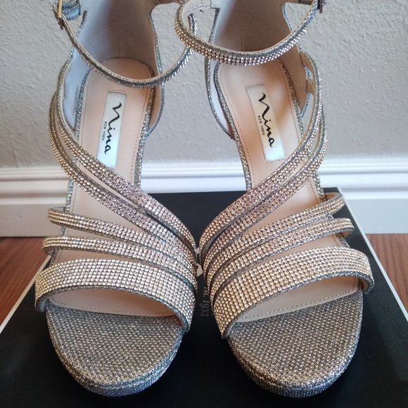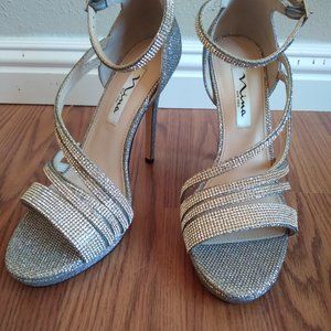 Nina Freyja Silver Strappy Metallic Rhinestone Stilleto Platform