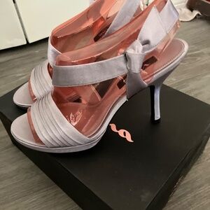 Nina Gesalyn Silver Satin Slingback Evening Sandal Size 9