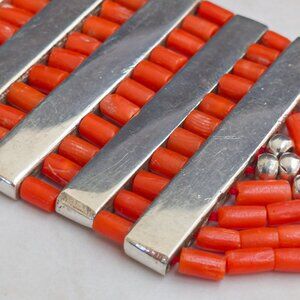 Nina Gill Paris Coral & Sterling Wide Bracelet (83.7g)