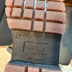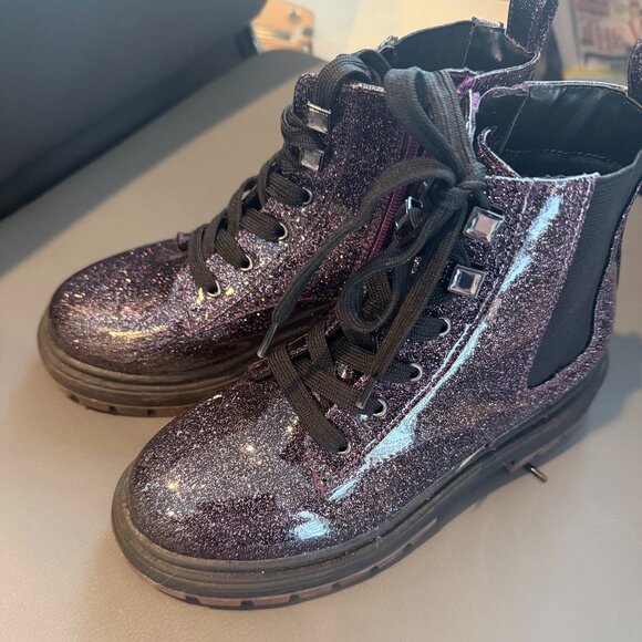 Nina Girls Purple Sparkle Lace-Up Boots. Size 2. Worn but in good condition. Purple metallic color with black accents.