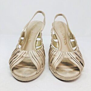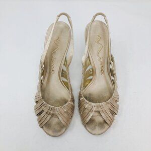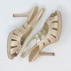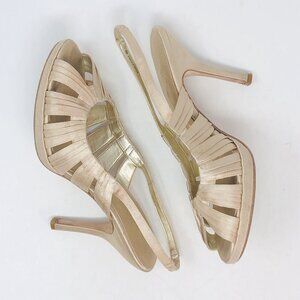 Nina Heels Womens 9M Gold Leather Fabric Slingback Peep Toe Slip On Formal Prom