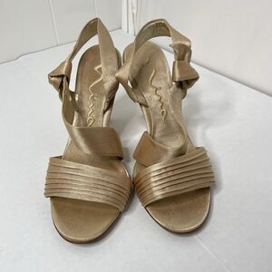 Nina Kitten Heels Shimmer Gold Bow Party Evening Y2K Peep Toe Glam 2000 8M