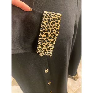Nina Leonard 90’s Black & Animal Sweater Coat Dress Goth Wednesday Size L Vintag