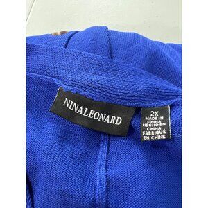 Nina Leonard Balloon Sleeve Belted Sweater Dress Plus Size 2X Deep Sapphire Knit