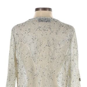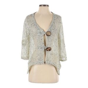 Nina Leonard Beachy Natural Open Work Mesh Embellished Cardigan Size M