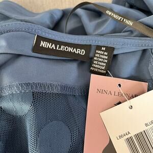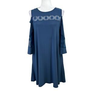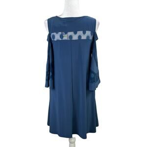 Nina Leonard Blue Moon Cold Shoulder Polka Dot Mesh Mini Shift Dress Size Medium NWT