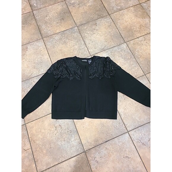 Nina Leonard Cardigan Sweater Crop Open Front Black Long Sleeve Sz XLarge