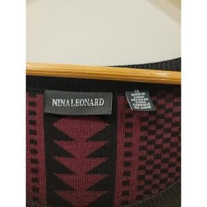 Nina Leonard Geometric Print Sweater Dress in Deepwine