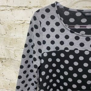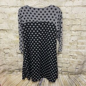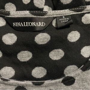 Nina Leonard Womens Small Gray Black Polka Dot 3/4 Sleeve A Line Dress With Pockets in excellent used condition. No stains, tears or rips.