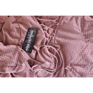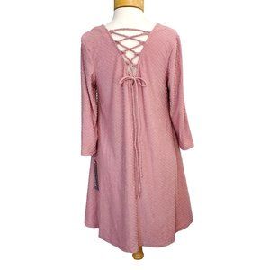 Nina Leonard NWT Swiss Dot Trapeze Dress Lace Up Back 3/4 Sleeves Sz M